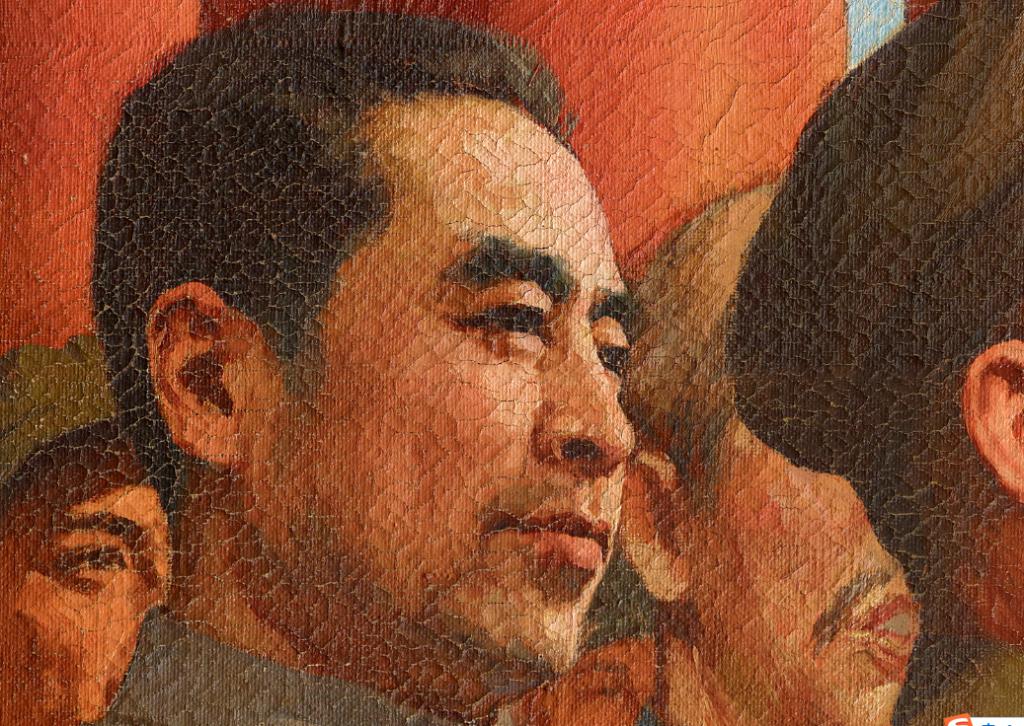 作品简介:《开国大典》描绘了1949年10月1日,毛泽东在天安门城楼上宣读中央人民政府公告,宣告中华人民共和国成立的重要历史时刻。中国人民在中国共产党领导下,实现了民族独立、人民解放和各民族的大团结,中国的历史由此开辟了一个新纪元。作为董希文的传世之作,这幅作品的意义更在于它代表了探索油画民族化的重要成果。《开国大典》场面恢宏,喜庆热烈,城楼上红柱耸立,大红灯笼高高悬挂,与碧空晴天、祥云万里形成了强烈的辉映。鲜红的地毯、黄色的菊花、红旗如林、彩旗招展,色彩浓郁,画家在进行严谨的写实描绘的同时,借鉴了民间美术和中国传统工笔重彩的表现手法。并通过色彩的处理和环境的气氛表现出人民领袖毛泽东主席站在天安门上宣布中华人民共和国成立的庄严场景。被誉为是中国油画探索民族风格的一个成功典范。